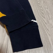 この黄色×ネイビーの長袖フーディーは、メンズ・レディース共に楽しめるMサイズのユニセックスデザインとなっており、カジュアルなスタイルに最適なアイテムです。